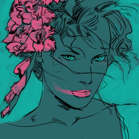 Azure strands weave and twist wildly when loose, hair as untamed as the woman. Her hair is usually only down when she is comfortable, or during an intimate moment. Otherwise, she keeps the long, unyielding locks of hair bound tightly on top of her head or braided, so it stays out of the way- ingrained in her during military training. When wet strands will curl all about thickly. Deirdre has not cut her hair in many, many cycles, making it uncontrollably lengthy. Secretly, she enjoys brushing & braiding her hair as a part of a strict routine, considering it a very intimate action if another does it for her.